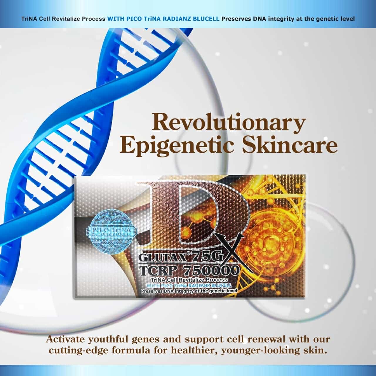 Rapid Results: Experience rapid skin whitening and repair with the Glutax 75Gx DCRP 750000 DNA Cell, making your skin flawless, firm, and radiant.